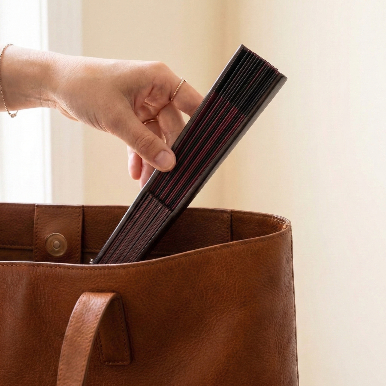It pairs naturally with yukata and kimono, but also works effortlessly with modern summer outfits. A pouch is included for easy carrying, making it a thoughtful seasonal gift as well.